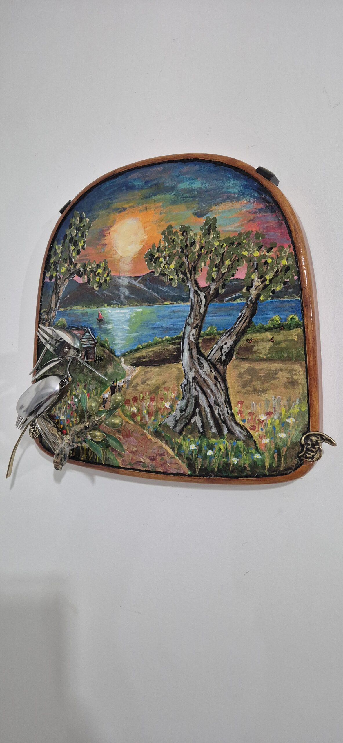 פסל קיר, שילוב עץ ומתכת, צבע אקרילי.